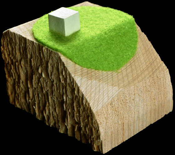 "Green Cube", Wood, Felt, Acrylic, 2"x3"x2", 2005