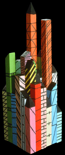 "Small City", Wood, Acrylic, 1"x1"4", 2005