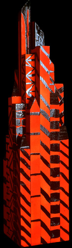 "Neon City", Wood, Spray Paint, Enamel, 5"x5"18", 2005