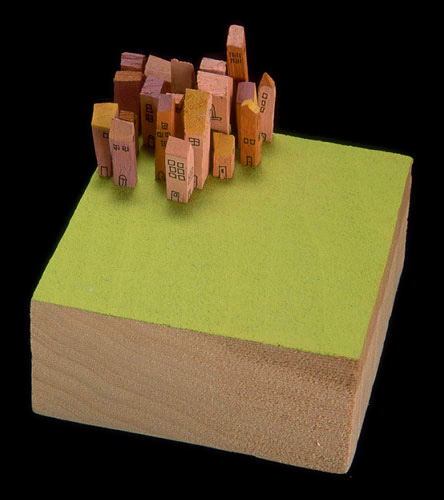 "Corner City", Wood, Acrylic, 4"x4"x3", 2004