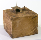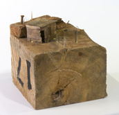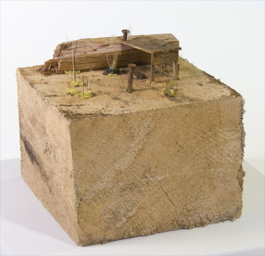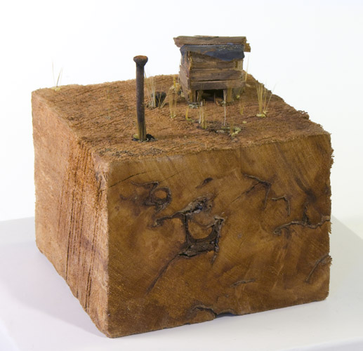 "Questionable Inhabitance, Questionable Inhabitants (1-6)", Wood, Found objects, 4"x4"x4" ea, 2009 BACK