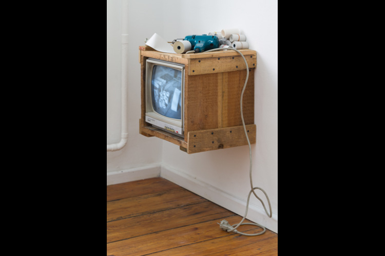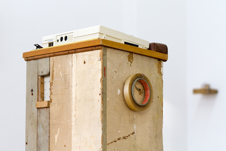 "Portable Practicality, Practical Portability", Wood, Epson HX-20 computer, found objects; various sizes, 2012 BACK